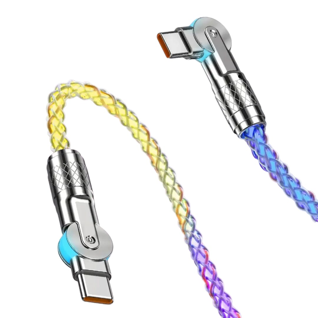 كابل شحن سريع USB-C إلى USB-C بقدرة 120 واط RGB LED، قابل للدوران بزاوية 180 درجة - متوافق مع CarPlay وAndroid Auto
